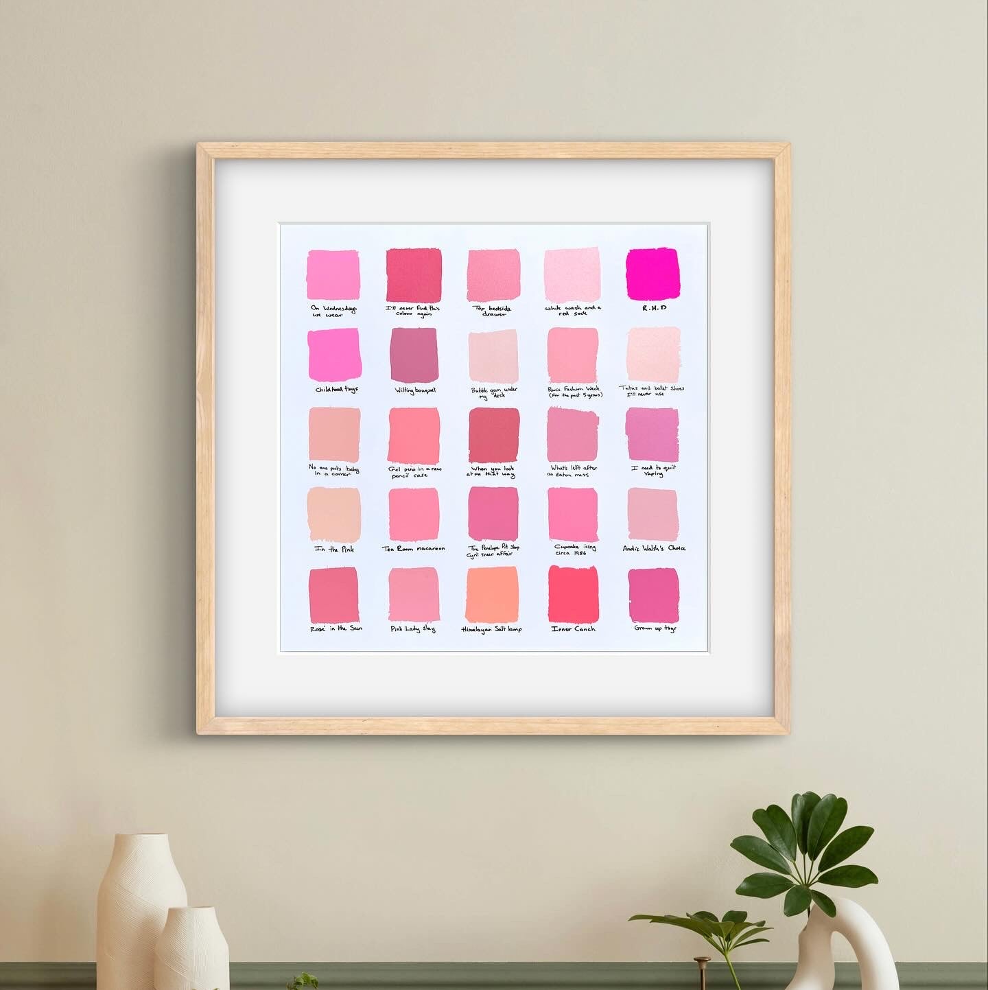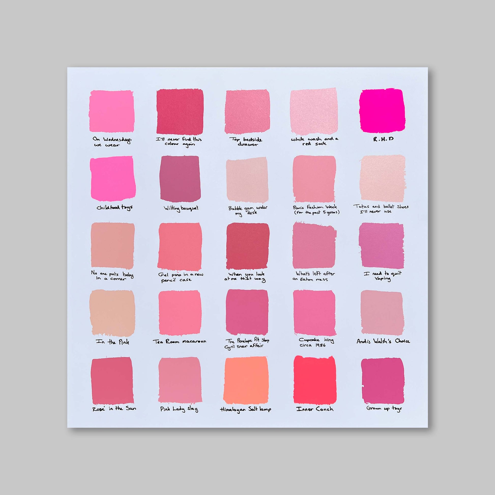The 25 shades of pink are a mix of favourite colours, associations with pink and some are just fun names for awesome colours. Colour means a great deal to us and whether we intend to or not we personalise our relationships with it by nature to bring us closed to our subjective emotional experience with the world around us.