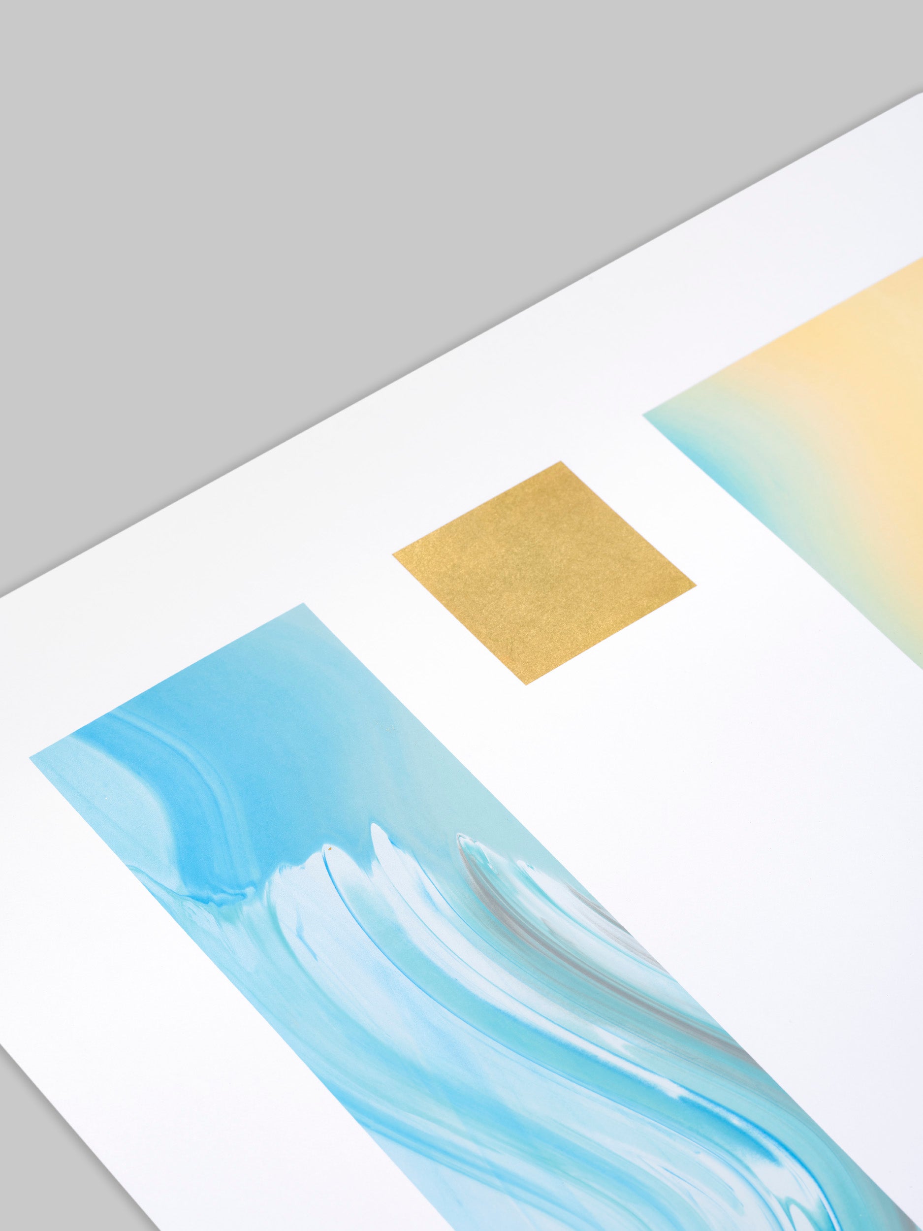 Each print has been finished with a hand gilded 24ct gold square to accent the colour palettes used.