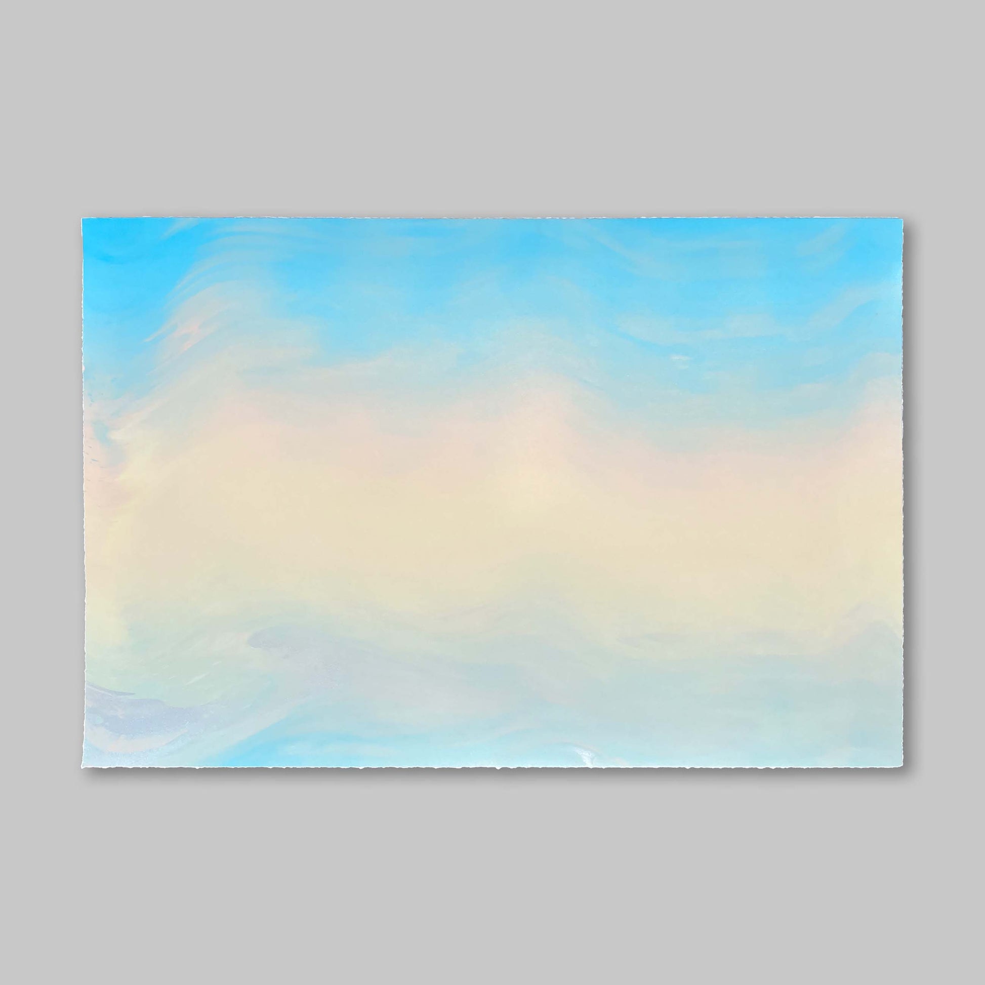 The palette selection for this colour blend is inspired by renaissance and baroque putti paintings. Silver pigment has been worked into the piece to give it a crisp and lightly iridescent finish that catches light where the silver has pooled during the blending and printing process.